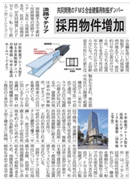2025年12月22日発行の「鉄鋼新聞」に、FMS合金制振ダンパーの採用が増えているという記事が掲載されました。 <br />